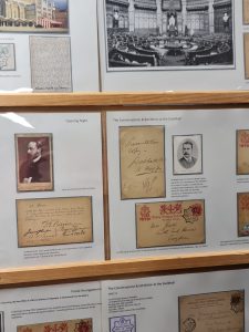 Mat Shaer contributed a characteristically inventive “No Stamps” display, consisting of two contrasting yet complementary boards. The first comprised Festival of Britain 1951 cinderellas, initially deceptive in appearance but entirely stamp-free. The second featured pre-stamp postal history of Oxfordshire, extending back into the 1870s, alongside examples of “Too Late” instructional handstamps.