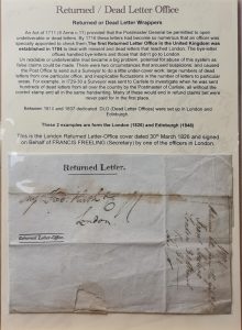 Jonathan Durley presented a fascinating “Not Delivered” display centred on the Dead Letter Office. He outlined the role and development of this department, especially following the dramatic increase in mail volumes after the introduction of the Penny Post, and illustrated his talk with several excellent examples of handled material.