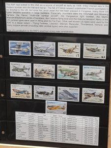 Further displays featured military aircraft, with Polish issues providing a philatelic timeline of the Second World War, and a concluding section on factual design errors—such as a Ghanaian stamp depicting a Stuka dive-bomber with impossible retractable undercarriage, the Jersey Titanic issue showing smoke from all four funnels when only three were capable for that use, and a Somalian stamp depicting a 1926 aircraft on a World War I theme.